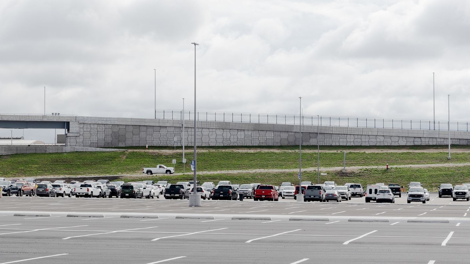 Look out of the window to view this large-scale project. The artwork is a single intervention––casting lines into concrete to create a palette of grids, pulses, and interweaving threads that animate the roadway walls and garage. Kuby collaborated with engineers to transform ubiquitous infrastructure into visually appealing forms. For the walls, 20 different patterns are arranged into large-scale, designs across 57,000 sf of wall space. The parking garage has a similar vocabulary of grids, lines, and pulses, evoking energy streams, technology, and geography. The artwork work accompanies people as they make their way through the airport campus on their unique travel journeys.